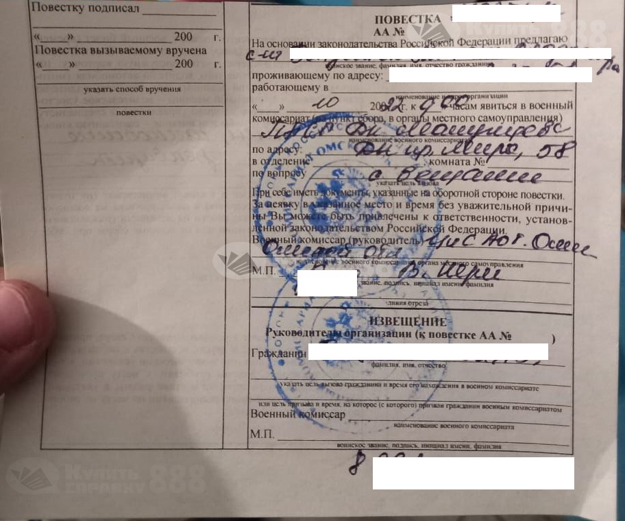 Жизненные обстоятельства развернулись так, что надо кому-то предъявить повестку о вызове в госорганы? Но самого документа нет? Тогда правильнее всего будет купить повестку на сайте «Купитьсправку888» и получить настоящий бланк в самые сжатые сроки.