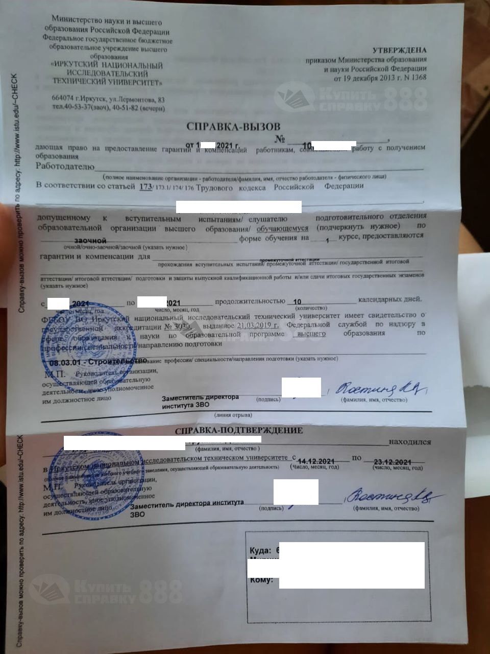 Справка-вызов на работу предъявляется 2 раза — первый при отъезде на сессию (вся справка), второй — при возвращении (отрывная часть — справка-подтверждение). Кстати если вы потеряли корешок — отрывную часть, то мы можем сделать вам только справку-подтверждение. Тогда нужен скан справки, чтобы сделать печать один в один с образца.